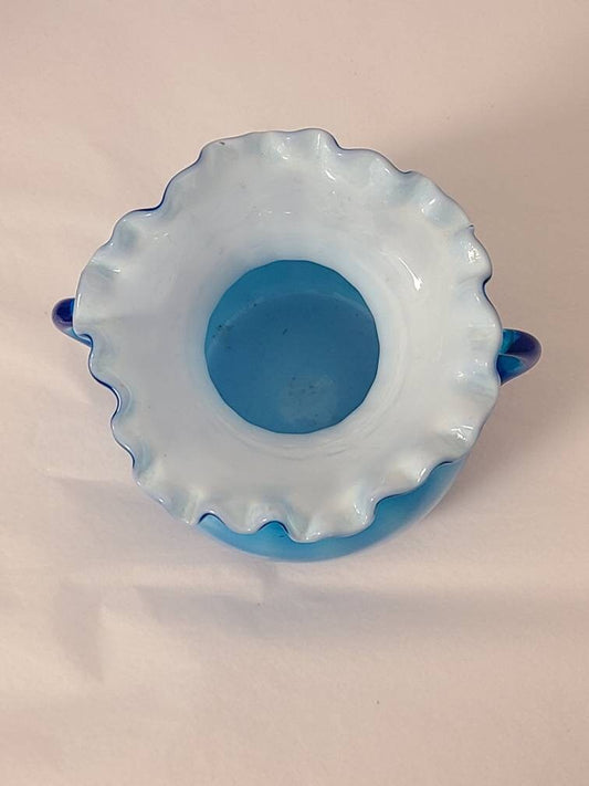 Vintage Cased Ruffled Blue White Vase