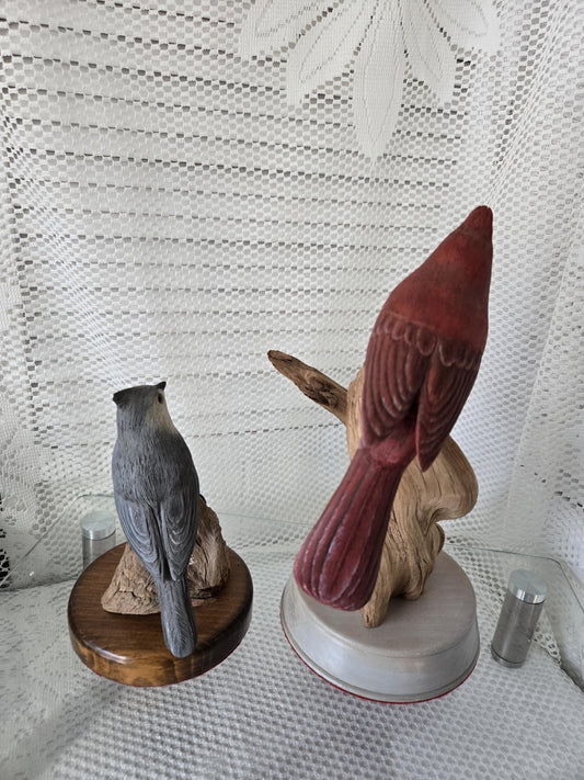 Pair Wood Bird Carvings - Signed R. Cash