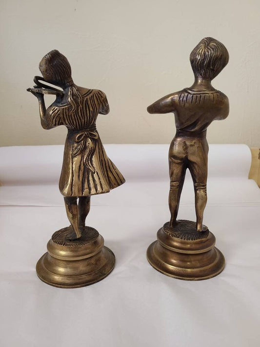 Vintage Bronze Girl and Boy Statue Figurines