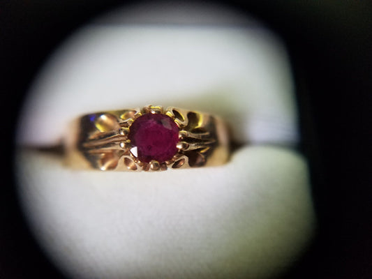 Estate Solitaire Ruby and 14K Yellow Gold Cocktail Ring