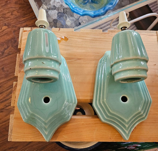 *SOLD* Art Deco Aqua Porcelain Wall Sconces