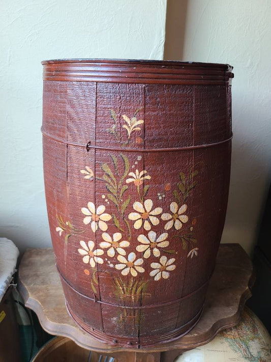 *Sold* Vintage Painted Small Nail Wood Barrel