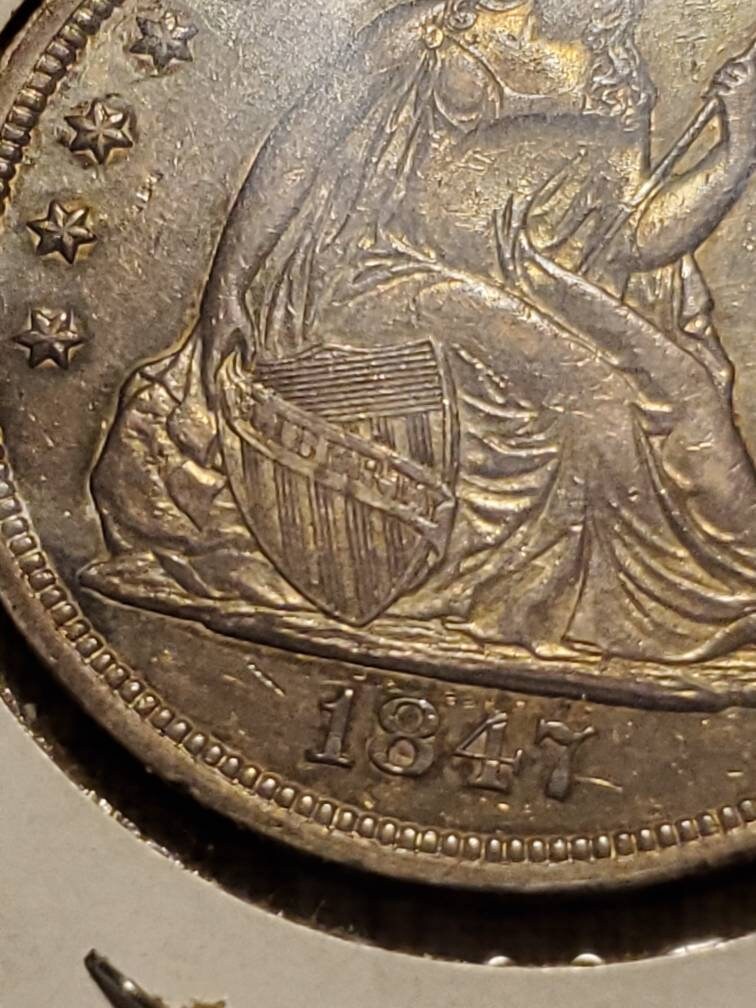 Rare 1847 seated liberty silver dollar coin. Circulated and ungraded, this is not a copy. Local in-person pickup in East Aurora, NY only, no shipping on this item.