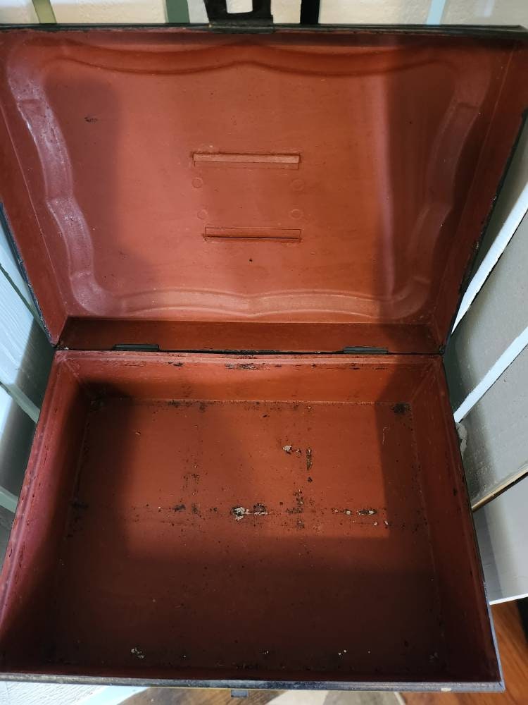 Condition: Overall normal wear with scuffs, scratches, dings, and rust. 1 spice box missing closure.