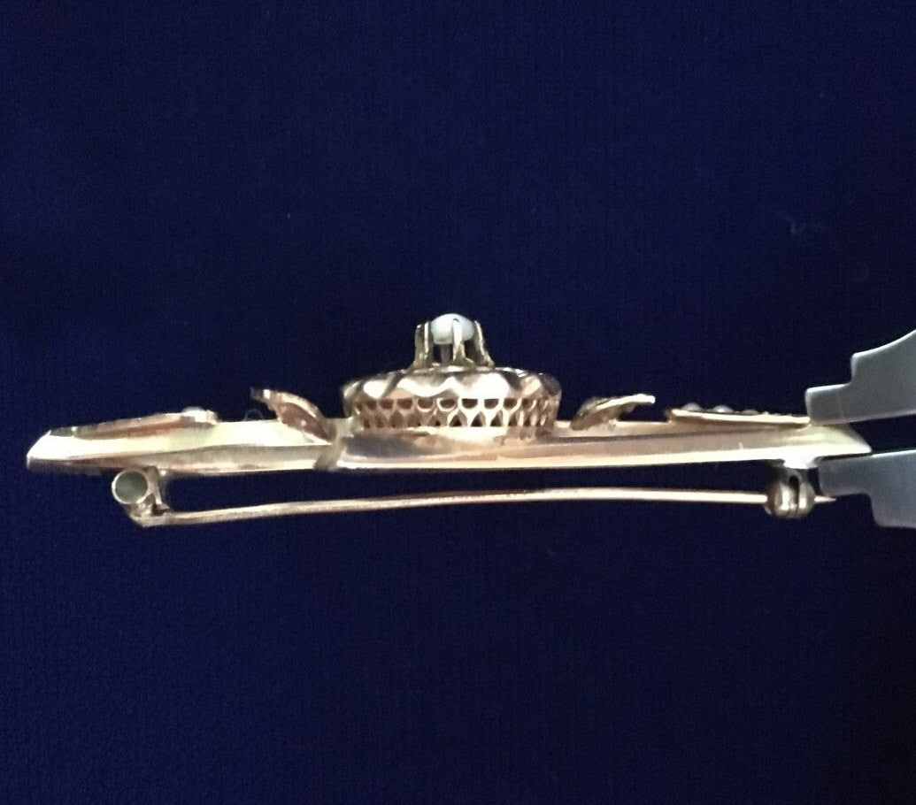 Antique, Victorian 18K Seed Pearl Flower/Leaf Design Brooch Pin - In-person pick up only