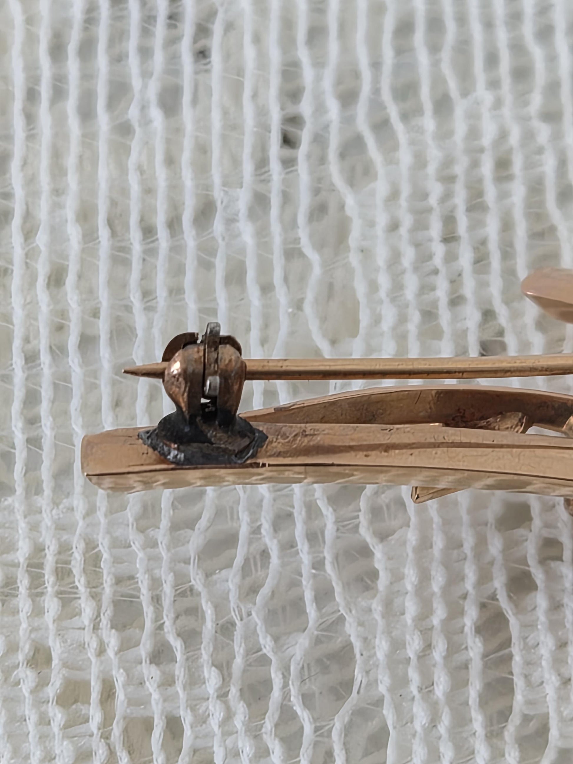 Condition: Item appears functionally fine. All vintage items show wear, some may have old repairs. Stick pin has a slight bend, but it can be straightened, and there are surface scratches. Seed pearls are not perfect.
