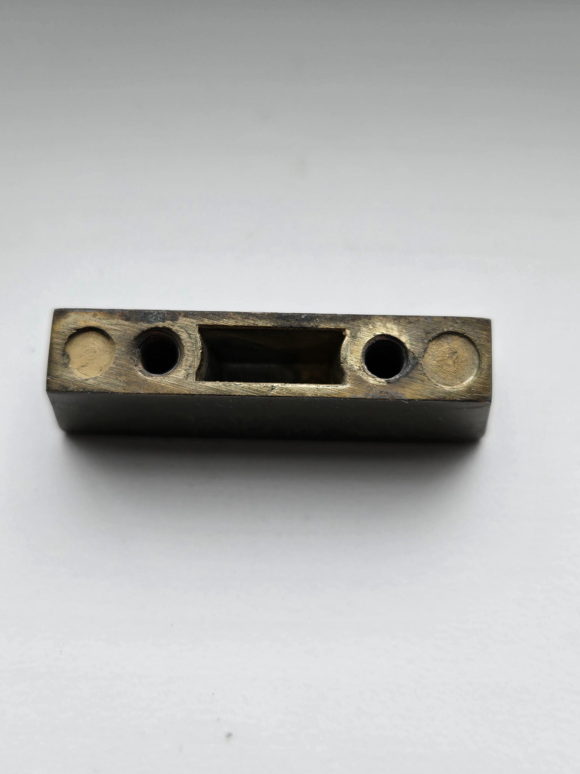 Unique and vintage slightly tapered Art Deco brass drawer knob, 2 hole.