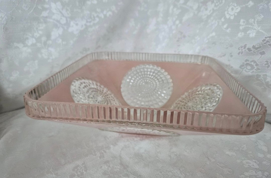 Amazing, vintage, Art Deco, holophane crystal ceiling shade with cut edges in a lovely satin pink finish.