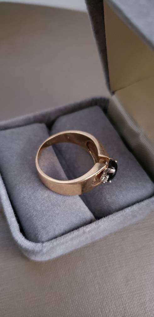 Art Deco Style Smoky Quartz Cabochon and Diamond Accent Ring 14K - Local Pick Up