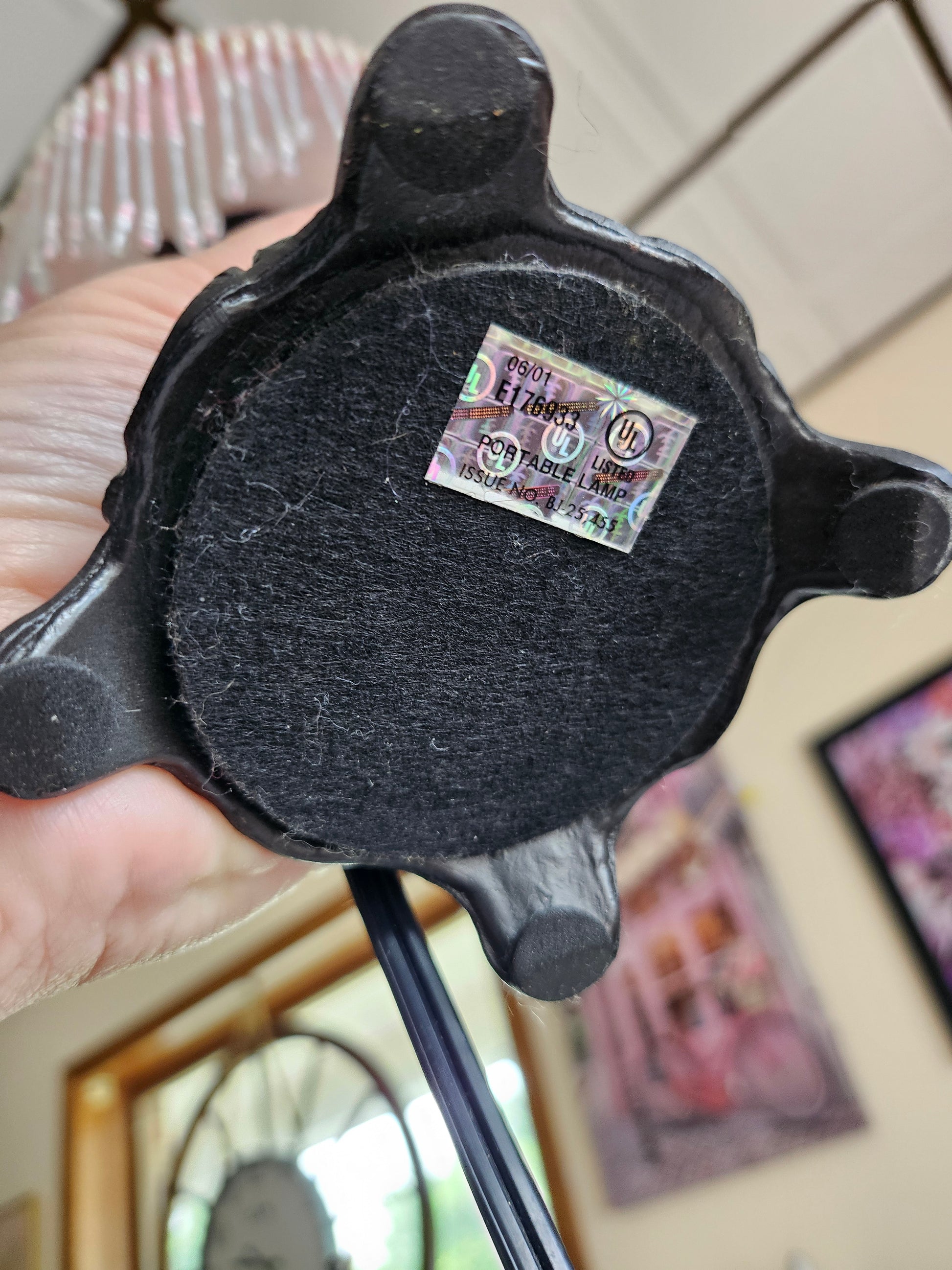 Condition: Good, some surface wear, felt bottoms are loose.White shade has a few chips under the beads.Takes 40 watt or less nightlight style bulbs.