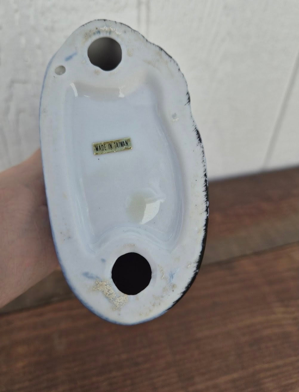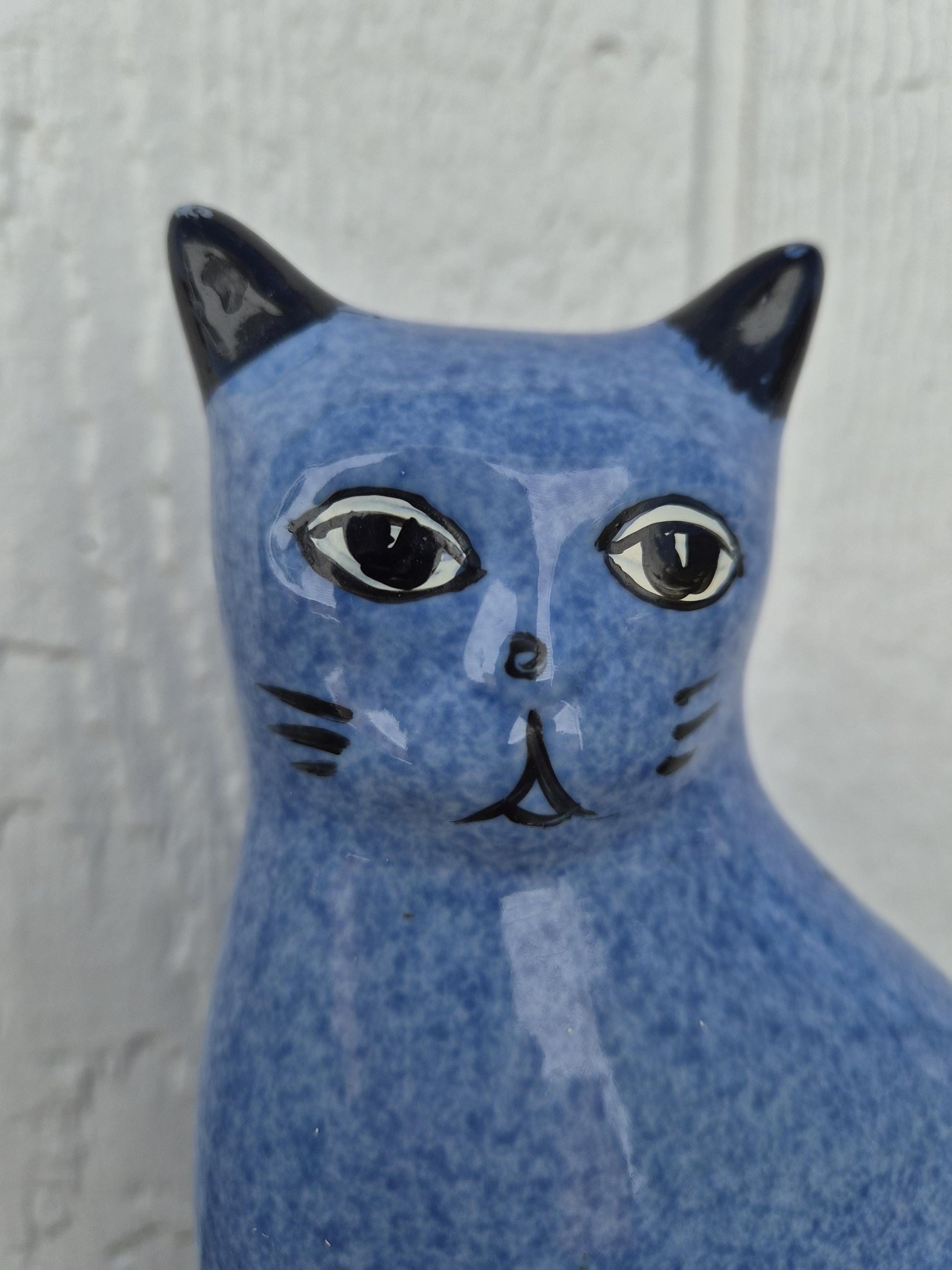 Vintage, ceramic blue spongeware speckled cat - made in Taiwan.
