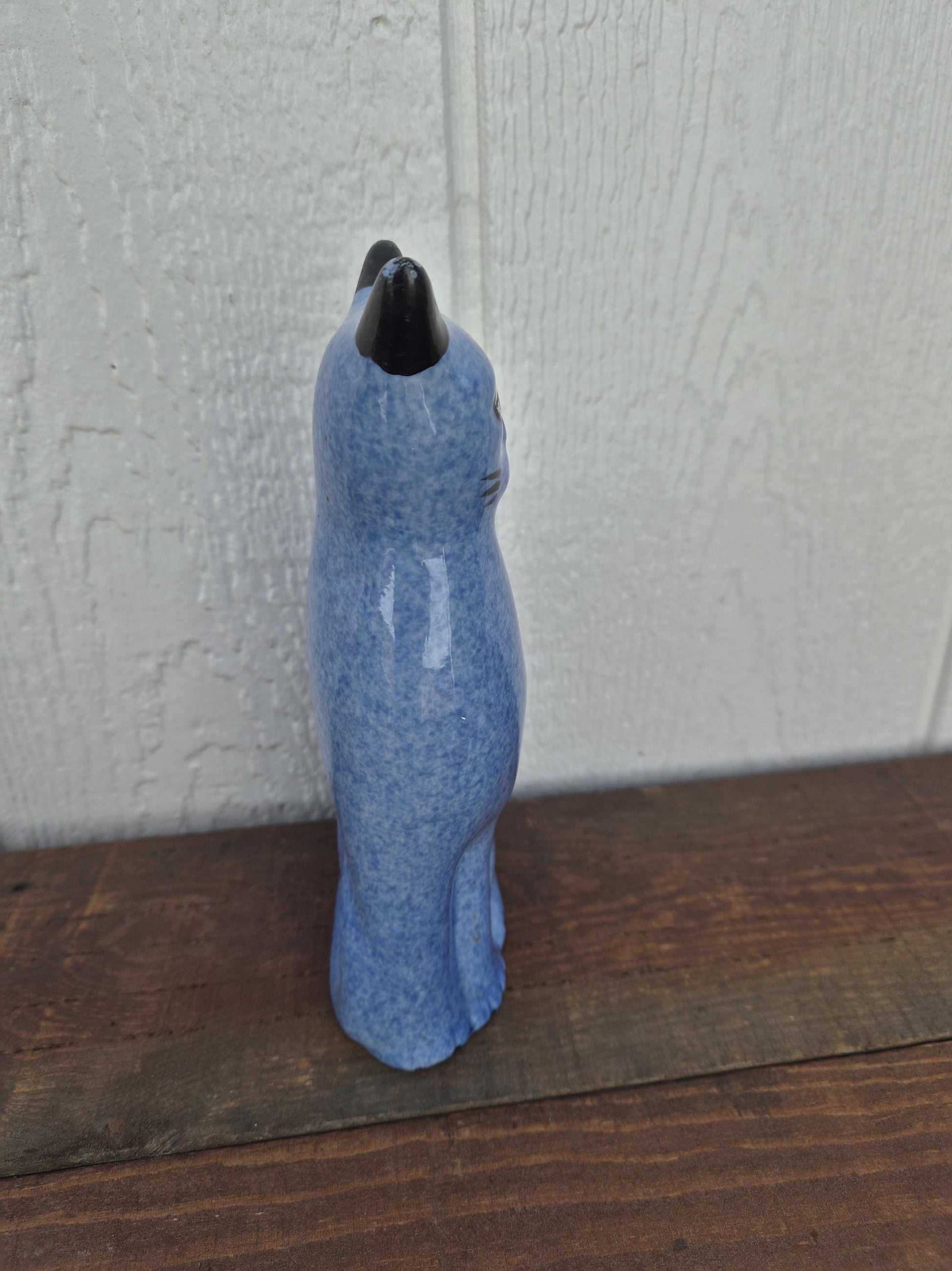Ceramic Blue Speckled Cat Figurine