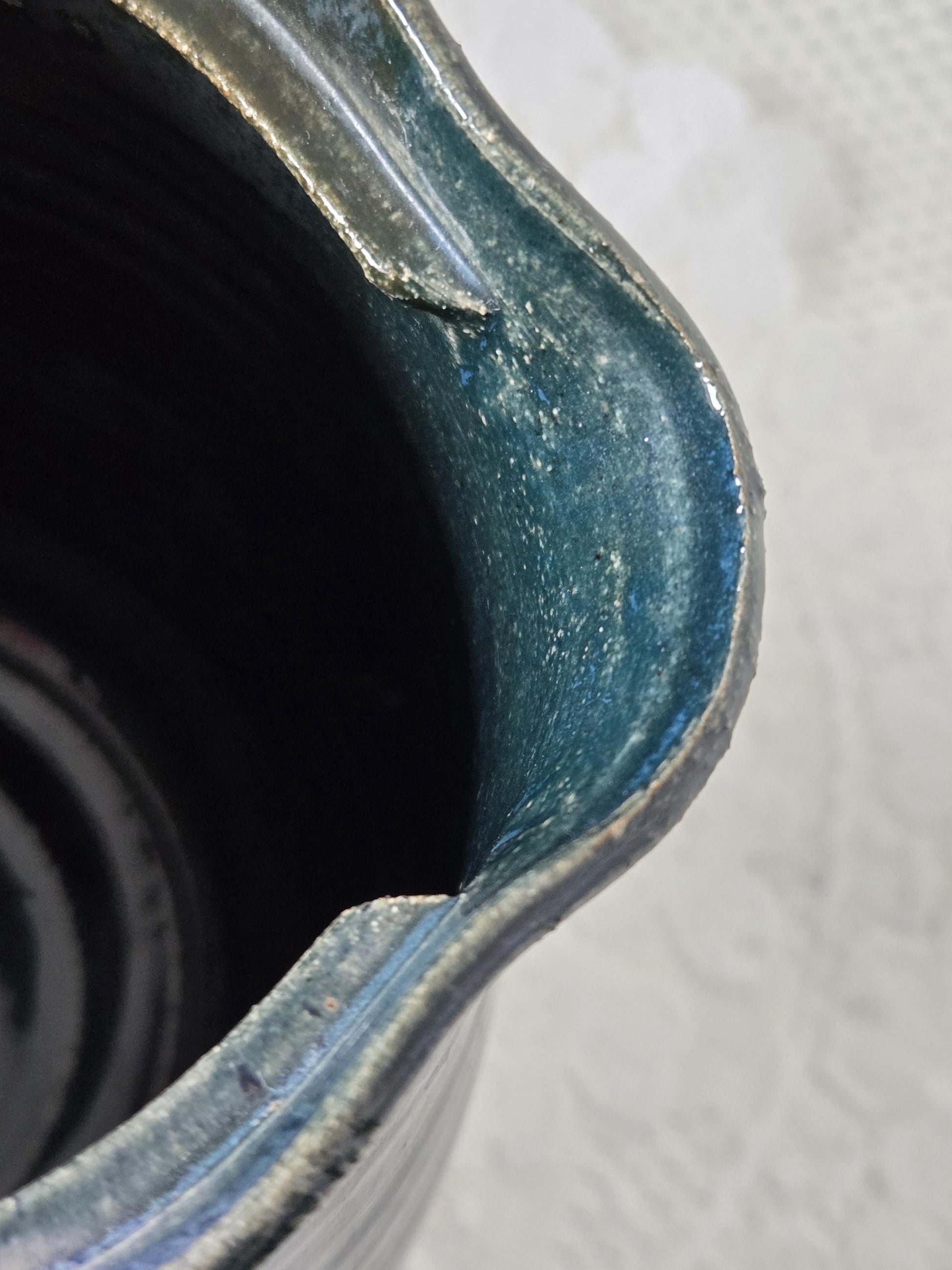 Condition: Appears unused, normal ceramic anomalies, possibly a few teeny handle scuffs. Spout feels rough to ne, but no damage.