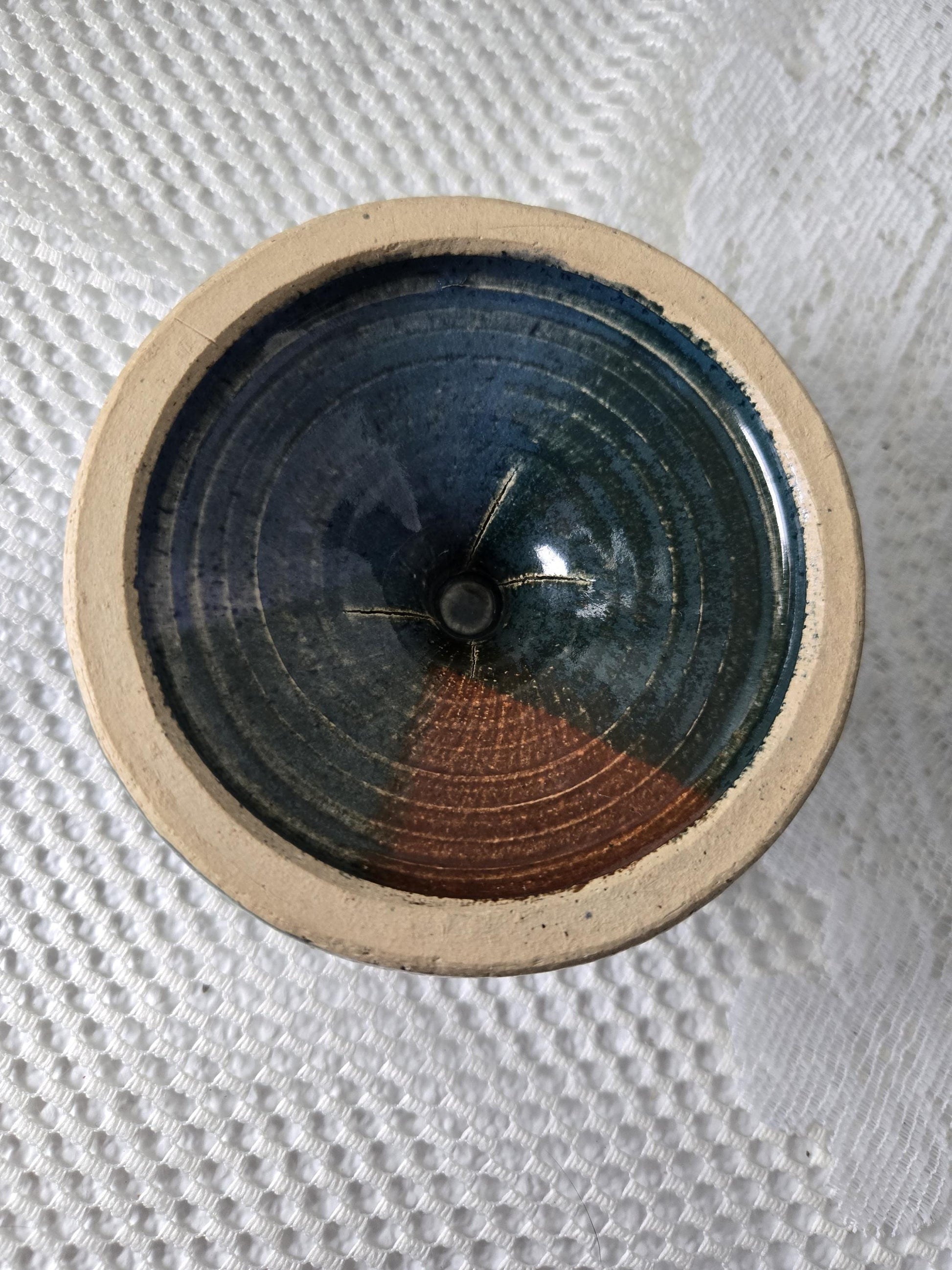 With this vintage Dixieland Pottery teapot in lovely earthtones with matching lid - bottom is signed.