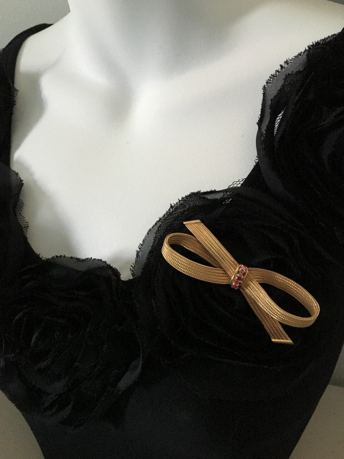 14K Yellow Gold Mesh and Pink Sapphire Bow Brooch, and matching pair of 14K Yellow Gold pink sapphire Clip-On Earrings by designer Cellino.