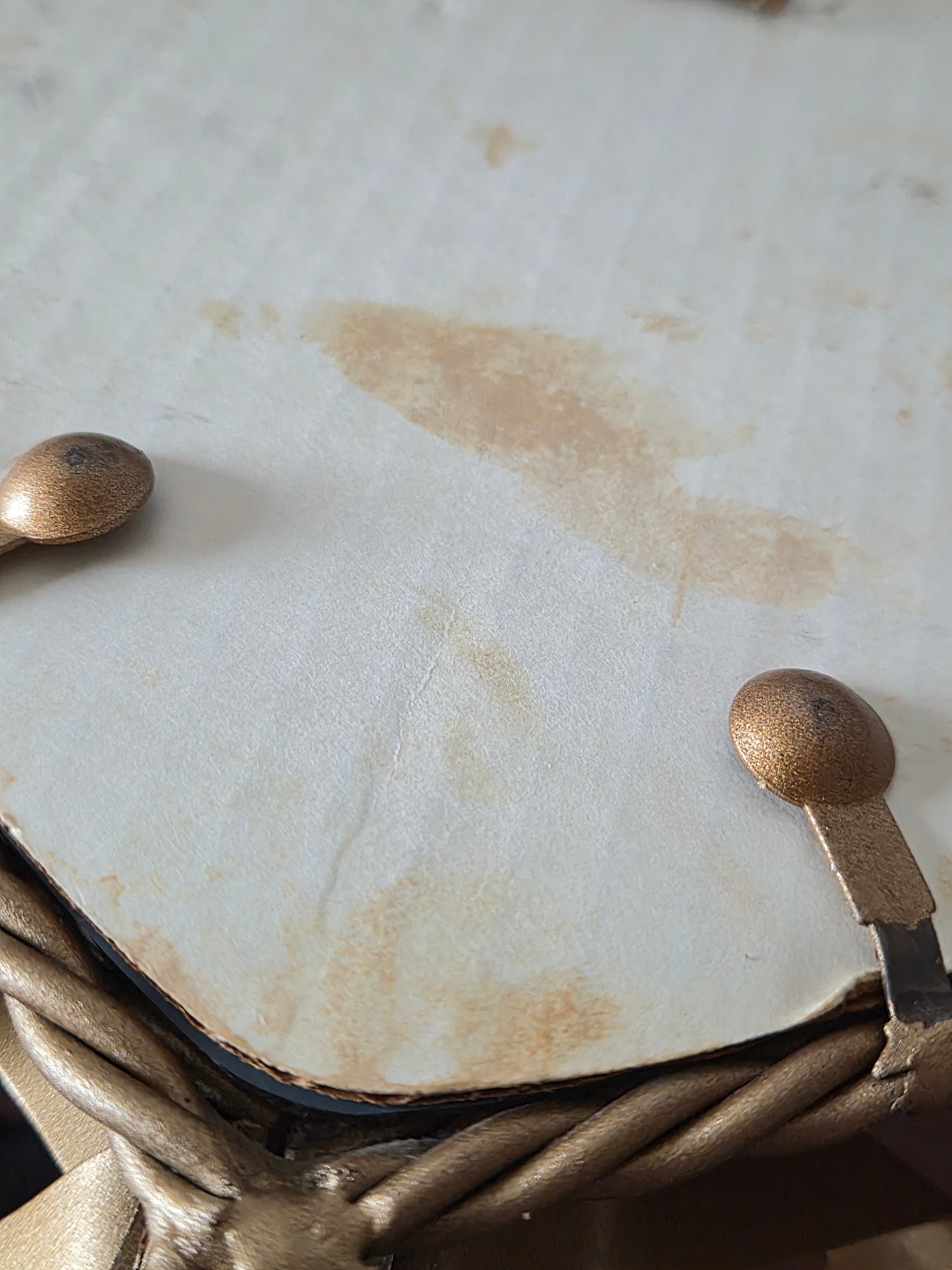 Condition: Paint chips, some rust areas, rust on candle drip tray, surface scratches.
