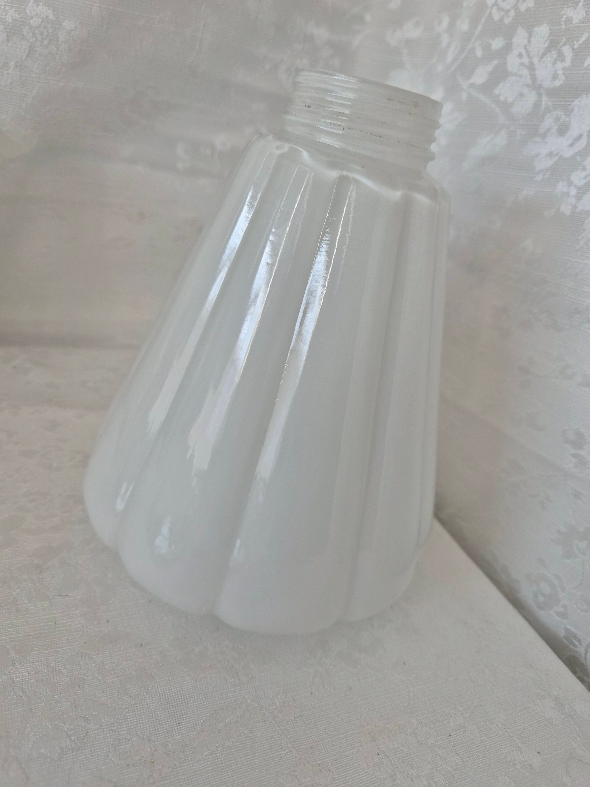 Condition: All Lamp sockets work. Tension works. There's some play in the bulb sockets. Metal patina throughout the pole and lamp sockets. Missing the pole bottom rubber plug, but it doesn't affect the tension. Normal overall wear from use. Some rough/chips areas on glass shades bottoms.