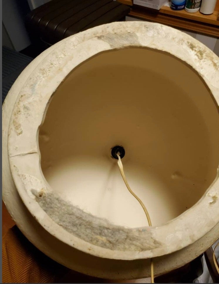 Condition: Good, some normal wear, lamp works fine. Missing felt protective bottom cover under base, some stains. No shade.