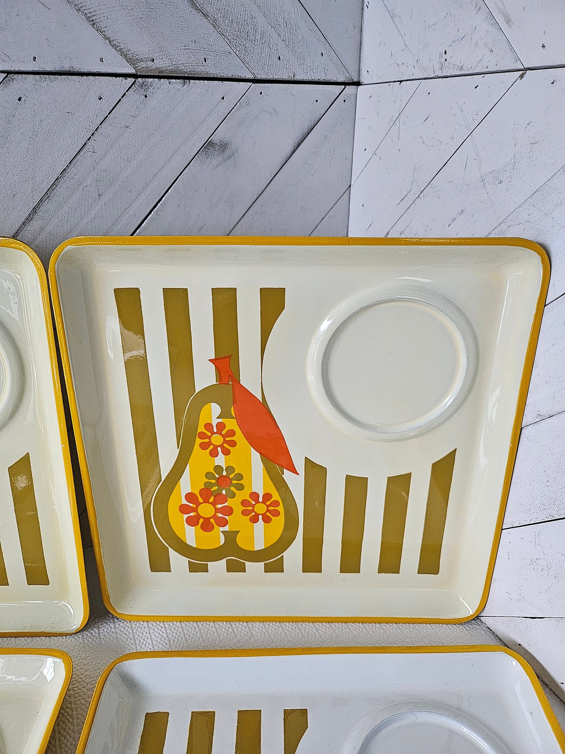 Mid Century snack sandwich trays for picnic or game nights with stripes and pear design by Accent JSC, set of 4.