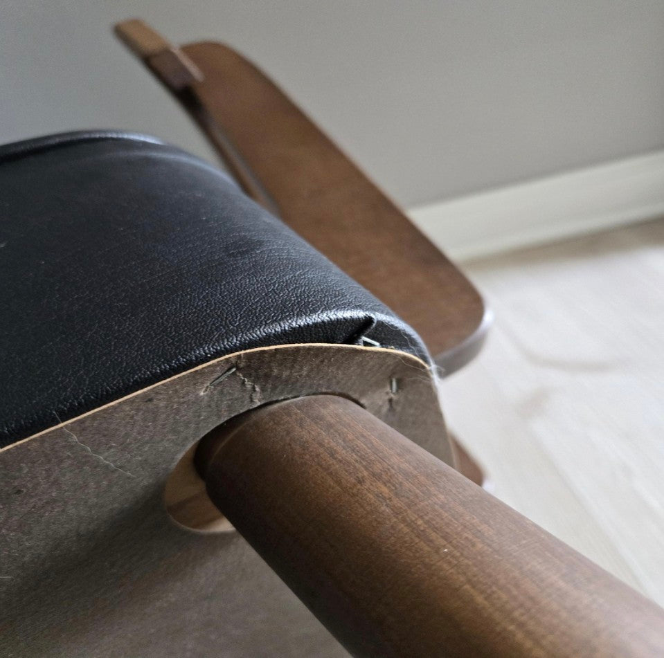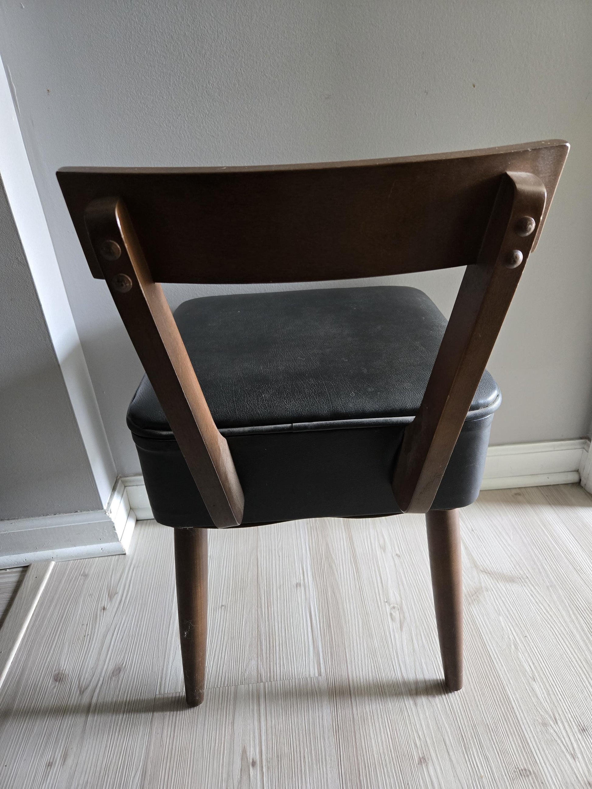 Mid Century Sears Sewing chair with flip up black vinyl top with storage. Legs will be removed prior to shipping, and they can be easily screwed back on by buyer.