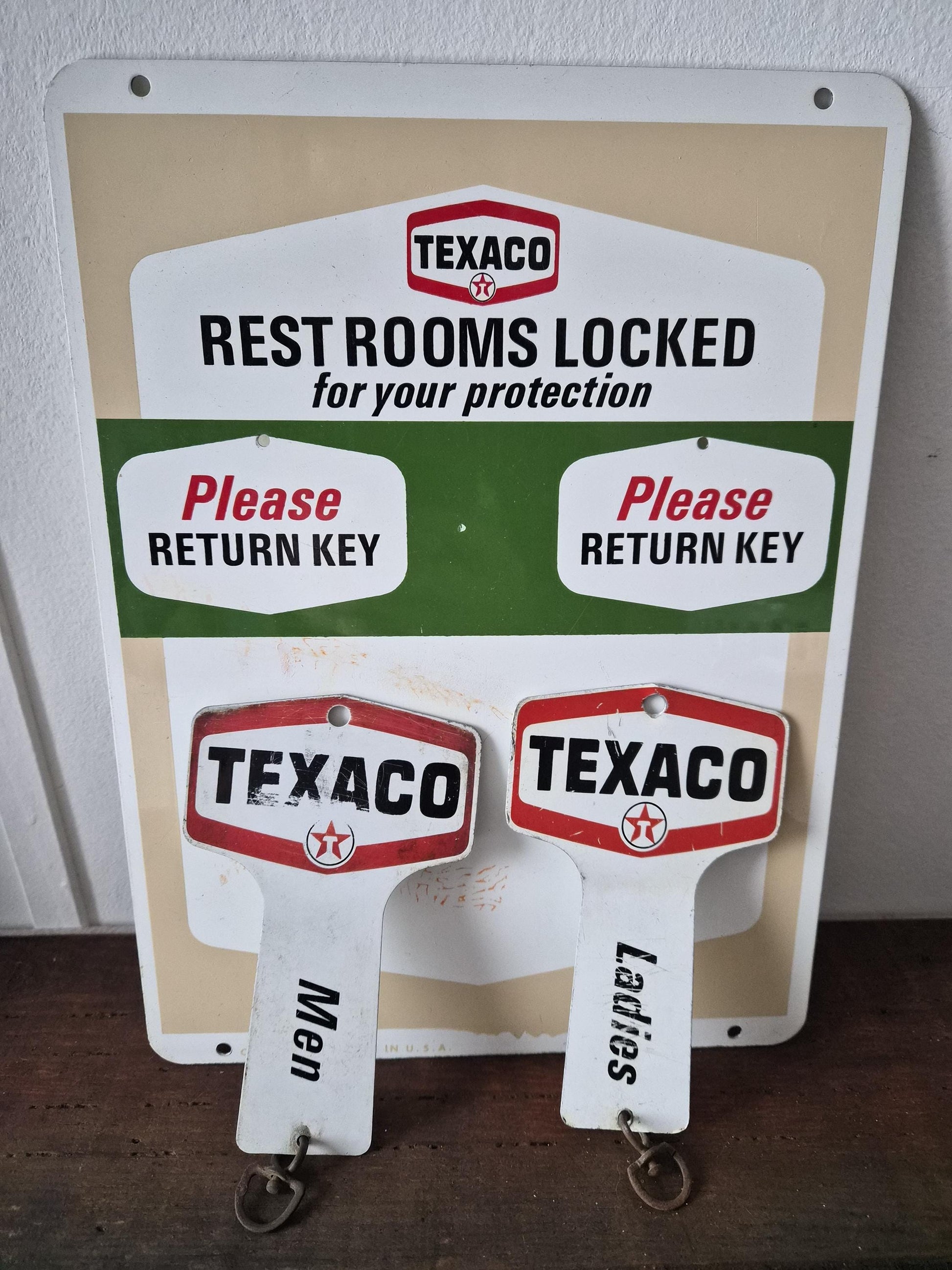 Original Texaco Restroom Signage with Key Tags