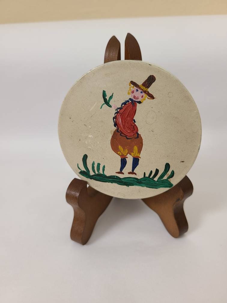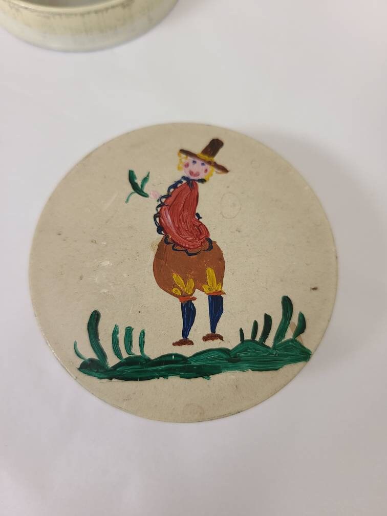 Cute vintage Royal #10 round ribbon tin. Lid has a hand painted figural motif.
