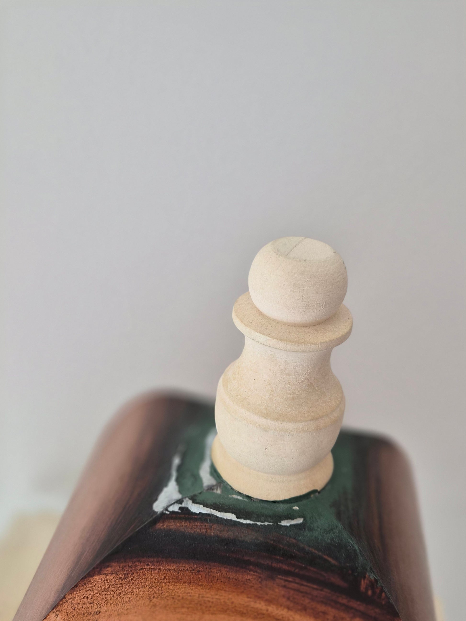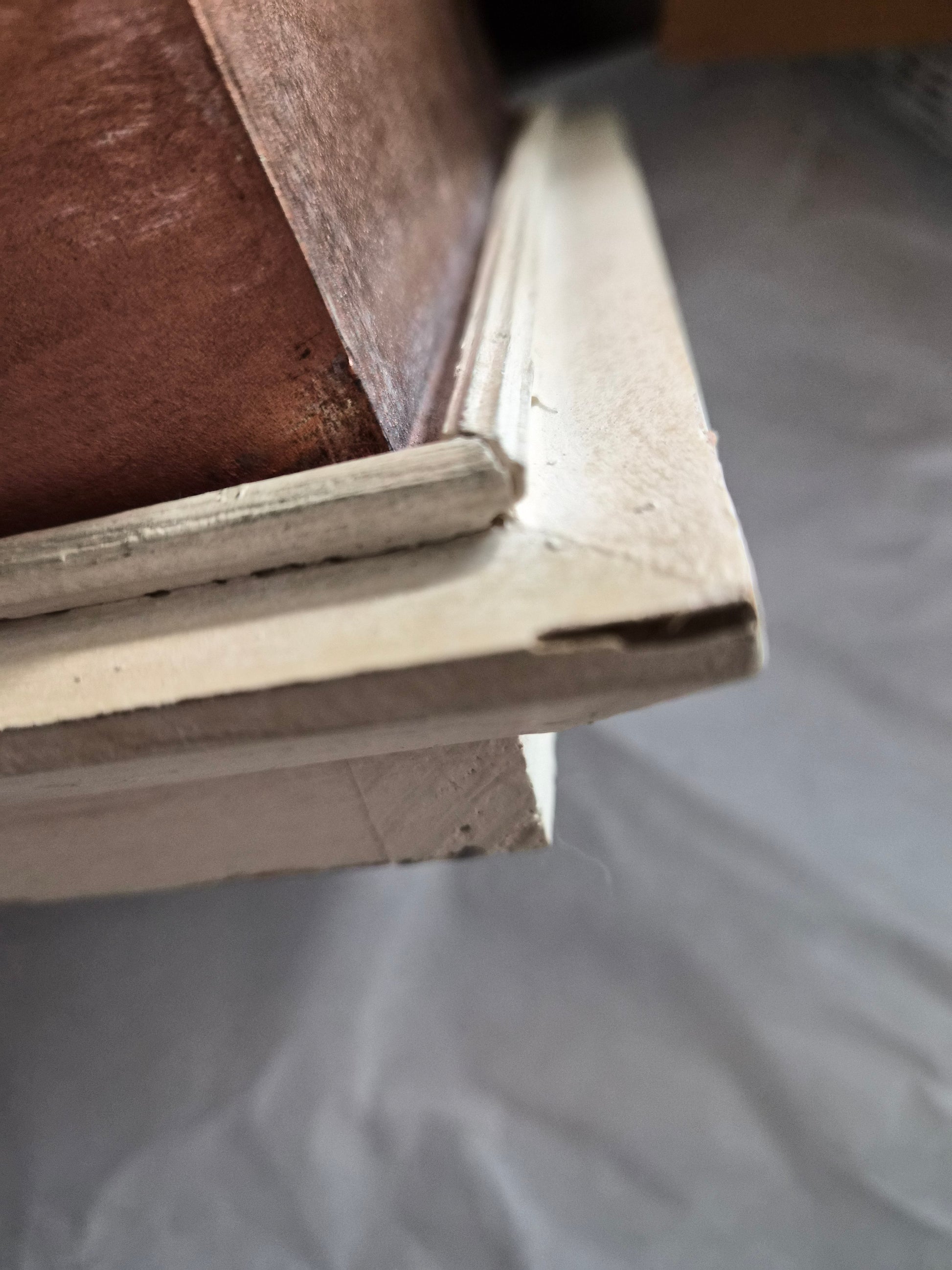 Condition: Wear to paint, scratches and chips in wood from use. Tarnish on copper around handle.