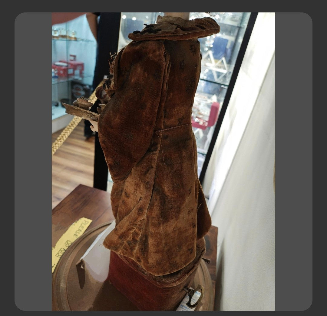 Chinese Automaton tea lady, circa late 1800's dressed in period velvet clothing. She has bisque face and hands, and real hair with fan adornment, and she comes with an equally rare glass domed display to keep her safe!.