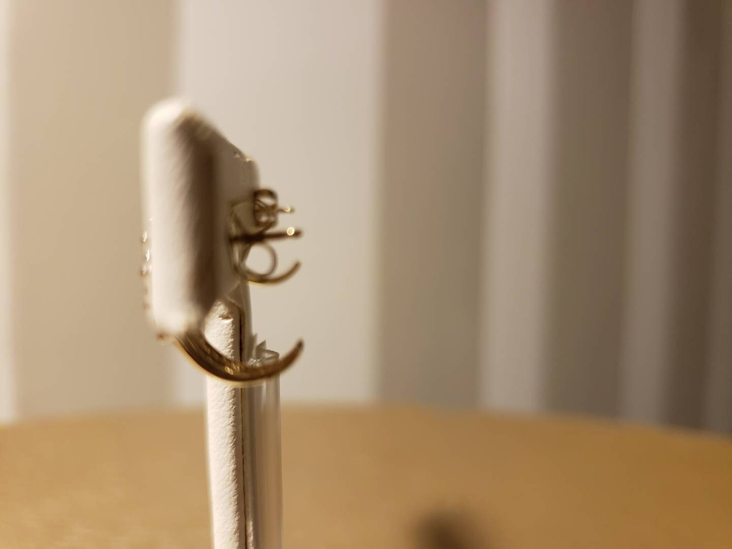 Condition: Fine surface scratches to gold from use. Slight bend in one earring post.