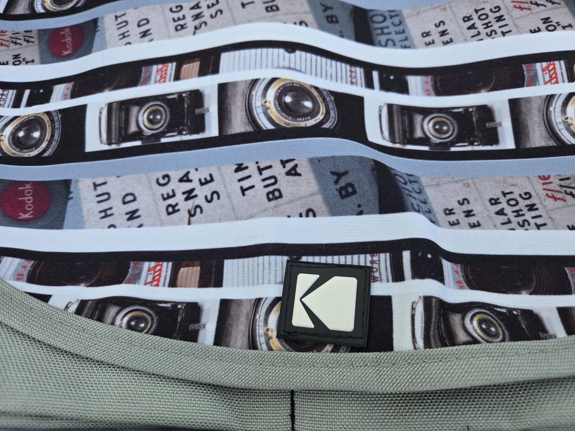 Unique Kodak gray canvas messenger bag depicting vintage Kodak cameras.