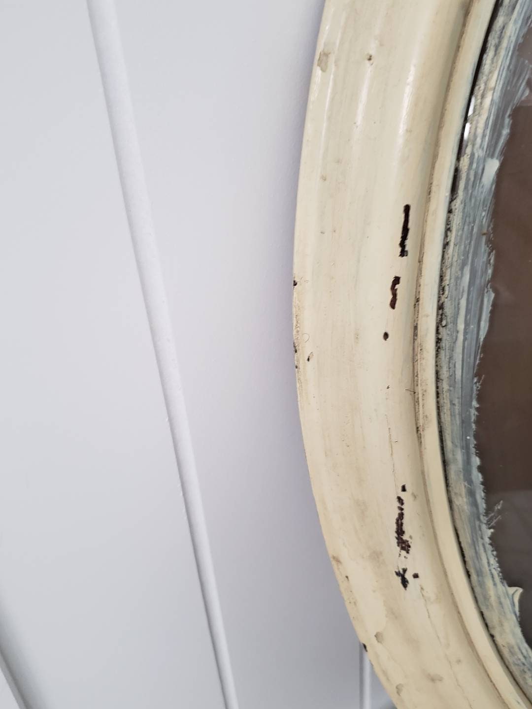 Condition: Paint wear, drips, and chips. Paint on glass. Wood frame had been painted once upon a time....